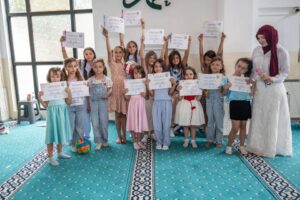 ولم تغب في هذه المناسبة المباركة مشاركة رئيس مجلس المشيخة الإسلامية في فوشتري، الأستاذ أيوب حازيري، ورئيس الأئمة، الأستاذ بصري زيكولي، حيث قاما – إلى جانب طاقم المدرسة الصيفية – بتوزيع الشهادات والهدايا على الأطفال المشاركين، في لحظة ستبقى راسخة في وجدانهم وذاكرتهم، علامةً على الالتزام والارتباط بالله، والإيمان، والمجتمع.