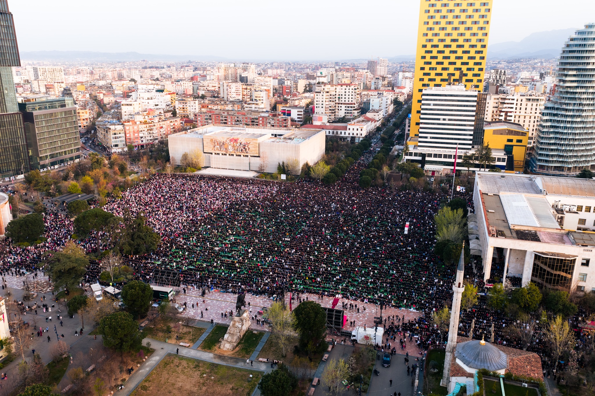 في مشهدٍ استثنائي يعكس قوة الحضور الإسلامي في قلب أوروبا، شهدت العاصمة الألبانية تيرانا، الواقعة في وسط البلاد وأكبر مدنها ومركزها السياسي والثقافي، واحدة من أعظم صلوات عيد الفطر في تاريخها الحديث، حيث احتشد عشرات الآلاف من المسلمين في ساحة «اسكندر بك» والساحات المحيطة منذ ساعات الصباح الأولى، في لوحة إيمانية جامعة تُجسّد وحدة الصف وروح الانتماء الديني.