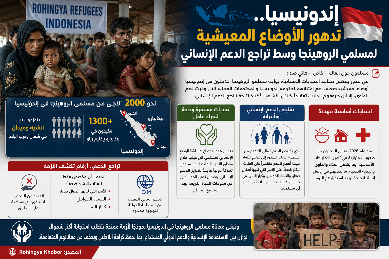 وتبقى معاناة مسلمي الروهينجا في إندونيسيا نموذجًا لأزمة ممتدة تتطلب استجابة أكثر شمولًا، توازن بين الاستضافة الإنسانية والدعم الدولي المستدام، بما يحفظ كرامة اللاجئين ويخفف من معاناتهم المتفاقمة.