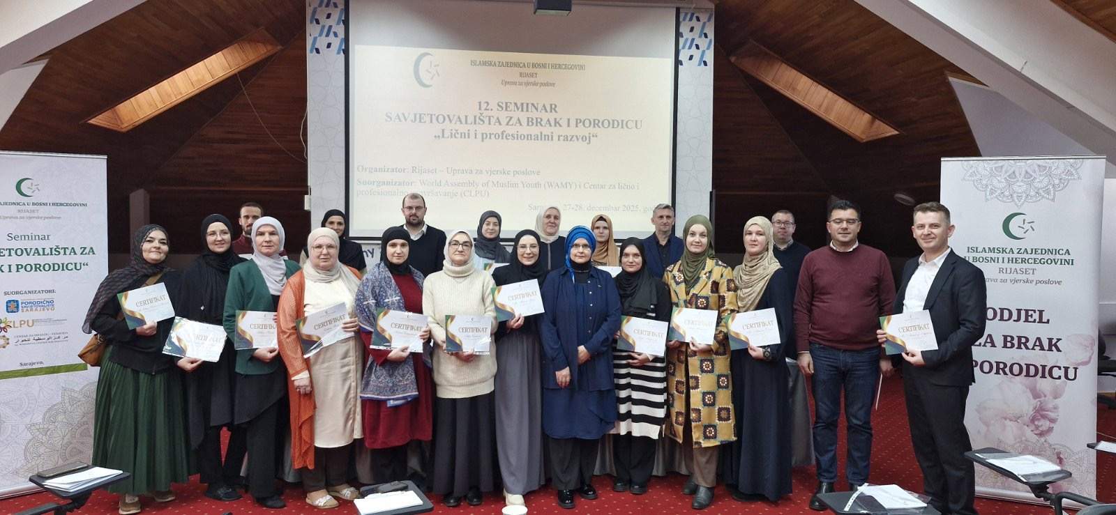 في سياق برنامج تدريبي متخصص مستمر لتأهيل العاملين في مجال الإرشاد الأسري؛ شهدت العاصمة سراييفو خلال الفترة 26 إلى 28 ديسمبر، انعقاد دورة الإرشاد للزواج والأسرة الـ12 بعنوان «التطور الشخصي والمهني»، بتنظيم من إدارة الشؤون الدينية في رئاسة المشيخة الإسلامية في البوسنة والهرسك.