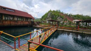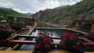 الصور توضح تصميمًا مميزًا للأحواض المائية المرتبطة بجسور خشبية ملونة، ومناطق جلوس تقليدية تمنح الزائر إحساسًا بالراحة والاندماج مع الطبيعة. صوت المياه الجارية، وبرودة الجو، وطعم السمك الطازج الذي يُصطاد من نفس المكان، كلها عناصر تجعل هذه التجربة من ألذ وأجمل ما يمكن أن يمر به الزائر في حياته.