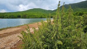 في قلب المنطقة، تتربع بحيرة عذبة تتحول في فصل الصيف إلى ما يشبه الشاطئ الجبلي، يقصدها السكان من المناطق القريبة للاستجمام والهرب من حرارة المدن. مياهها الصافية وحوافها الصخرية تمنح الزائر تجربة هادئة ونقية، بينما تحيط بها الغابات من كل جانب في مشهد أقرب إلى اللوحات الطبيعية الأوروبية النادرة.