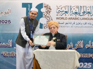 في ختام الفعالية، قام شيخ الإسلام في تايلاند بتكريم الداعمين والرعاة والمساهمين في إنجاح اليوم العالمي للغة العربية، تقديرًا لجهودهم في خدمة اللغة العربية وتعزيز حضورها في الأوساط التعليمية والشبابية، وتحفيزًا لاستمرار هذه المبادرات في الأعوام المقبلة.