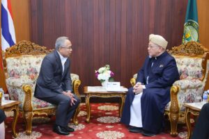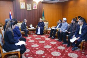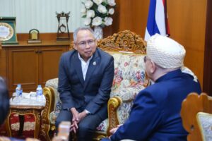 بهدف تعزيز وتفعيل دور المنظمات الدينية في العمل الإنساني الخيري والتنموي المجتمعي لدعم الفئات الأكثر هشاشة في المجتمع؛ استقبل شيخ الإسلام في مملكة تايلاند، أرون بونشوم، يوم 21 أبريل 2569 وفق التقويم التايلاندي (الموافق 2026 ميلاديًا)، وكيل وزارة التنمية الاجتماعية والأمن الإنساني كانتابونغ رانغسي سوانغ، في العاصمة بانكوك، لبحث إطلاق مشروع مشترك يستهدف تحسين جودة الحياة للفئات الأكثر احتياجًا.