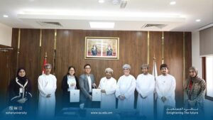 بعد جولته في الإمارات، انتقل وفد قسم اللغة العربية وثقافتها في جامعة جين جي إلى سلطنة عُمان، حيث كانت جامعة صحار أولى المحطات. واستقبل رئيس الجامعة الأستاذ الدكتور حمدان سليمان الفزاري الوفد بحفاوة، مؤكدًا حرصه على تطوير التعاون القائم مع قسم اللغة العربية وثقافتها في تايوان ليشمل جوانب أكاديمية وثقافية أوسع.