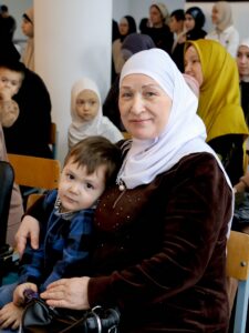 برفقة آبائهم وأمهاتهم وأجدادهم، حيث امتلأت الطوابق الثلاثة للجامع الكبير بالحاضرين
