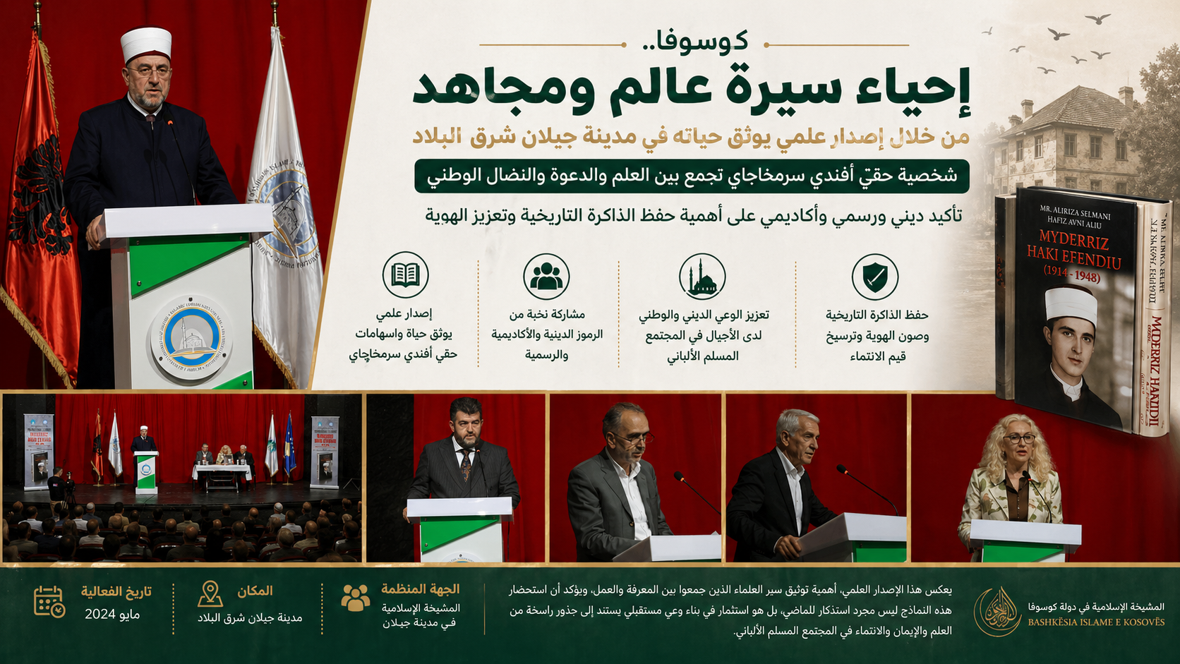 وجاءت هذه الفعالية في سياق إعادة الاعتبار لرموز المجتمع المسلم الألباني، حيث يقدّم الإصدار قراءة شاملة لمسيرة علمية ونضالية تركت أثرًا عميقًا في الوعي الديني والوطني، بما يعزز حضور هذه النماذج في الذاكرة الجماعية.