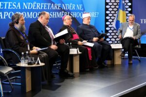 واختُتمت الفعالية بمحور حواري مفتوح جمع القيادات الدينية في كوسوفا، بمشاركة فضيلة الشيخ نعيم ترنافا، رئيس المشيخة الإسلامية في دولة كوسوفا ومفتي البلاد، ودوده جيرجي من الكنيسة الكاثوليكية، وآرثور كراسنيقي ممثل الكنيسة البروتستانتية الإنجيلية، وأندريه سايتش من الكنيسة الأرثوذكسية، حيث جرى تبادل الرؤى حول آليات تعزيز التعاون بين المكونات الدينية.