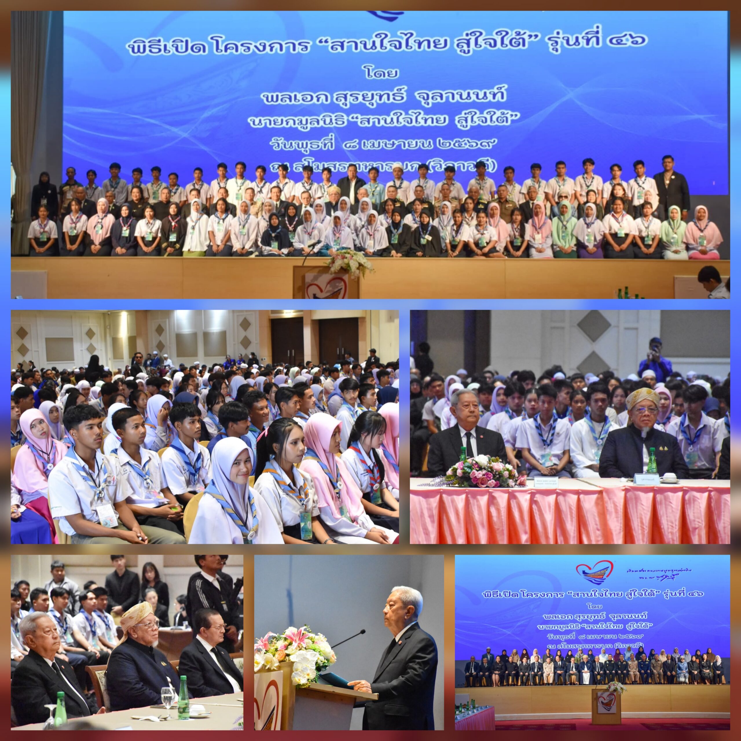 في خطوة وطنية تعكس رؤية بعيدة المدى لبناء مجتمع أكثر تعايشًا وتفاهمًا، انطلقت الدورة الـ46 من برنامج «من القلب إلى الجنوب»، بمشاركة 320 شابًا من 5 محافظات جنوبية، ضمن مشروع ممتد منذ عام 2005، الموافق 2548 وفق التقويم البوذي المعتمد في تايلاند.