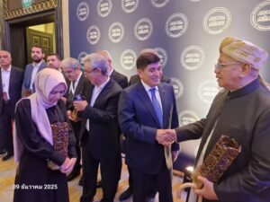 وترأس مفتي تايلاند، السيد أرون بونتشوم، وفد بلاده المشارك في الحفل، إلى جانب عدد من الشخصيات الأكاديمية والمؤسسية، من بينهم الأستاذ الدكتور عبد الله نومسوك، مدير معهد الوسطية من أجل السلام والتنمية التابع لمكتب مفتي تايلاند، والدكتور محمد أمين تشهنو، مدير معهد المعايير الحلال في تايلاند، والدكتور جاكريت ماننوي، ممثل رابطة خريجي الجامعات العربية.
